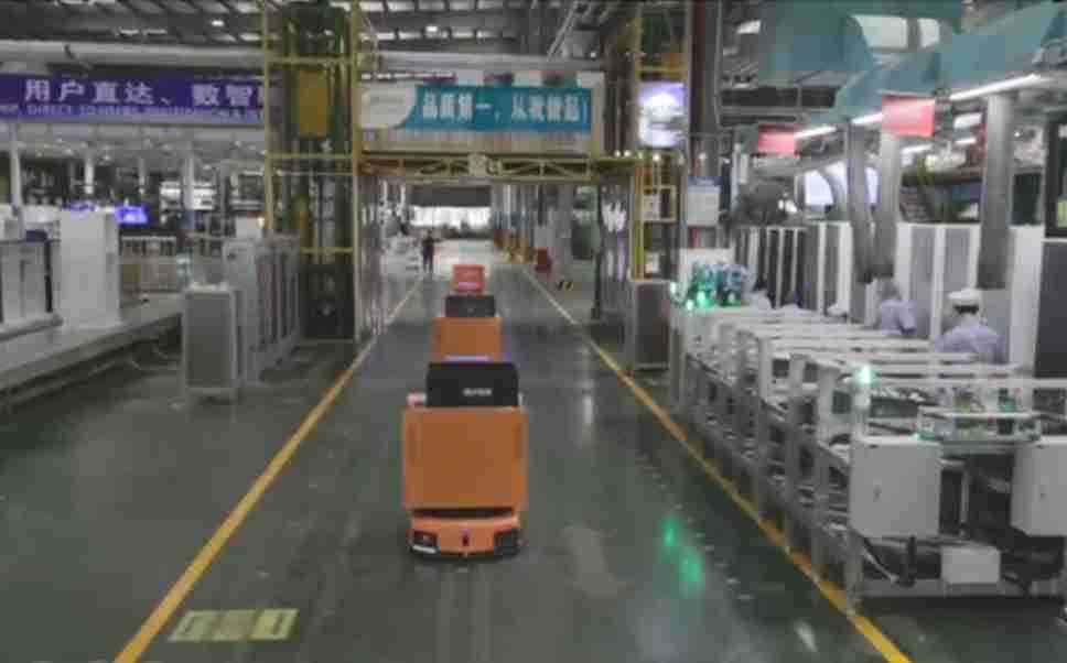 为车载冰箱物流配送打造的智能解决方案,,包含产中物流通过潜伏举升AMR搬运至线边,,产后成品物流智能仓储,,,流程包含产中物流智能齐套入库,,,线边安灯叫料AMR智能配送至线边,,,成品入库、、、、出库,,通过无人堆高车机器人,,,,智能仓储管理替代人工作业管理,,实现更高存储、、更高效率、、更具柔性化的解决方案。。。
